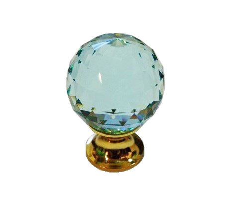 Ручка кнопка 200200PB030OZ green, материал Латунь, цвет Зелёный, отделка Золото Кристаллы Swarovski, d=30 мм